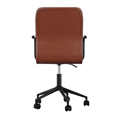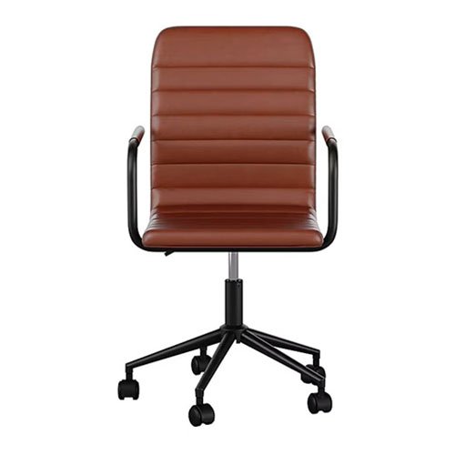 •Esta silla de escritorio de cuero sintético presenta un marco de níquel pulido con apoyabrazos integrados.